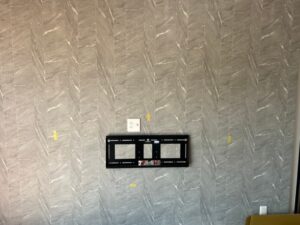 今回のお客様も、新築計画の段階からテレビを壁掛けにする予定だったとのことで、設置予定の壁はあらかじめ「ふかし壁」として施工されていました。 事前に準備された構造を活かすことで、無理のない電気工事が可能となりました。