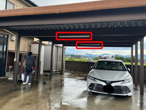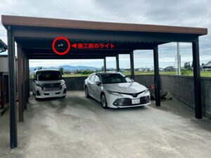 摂津市で広めのカーポートを明るく防犯対策!LED照明2台設置とスイッチ増設の施工事例
